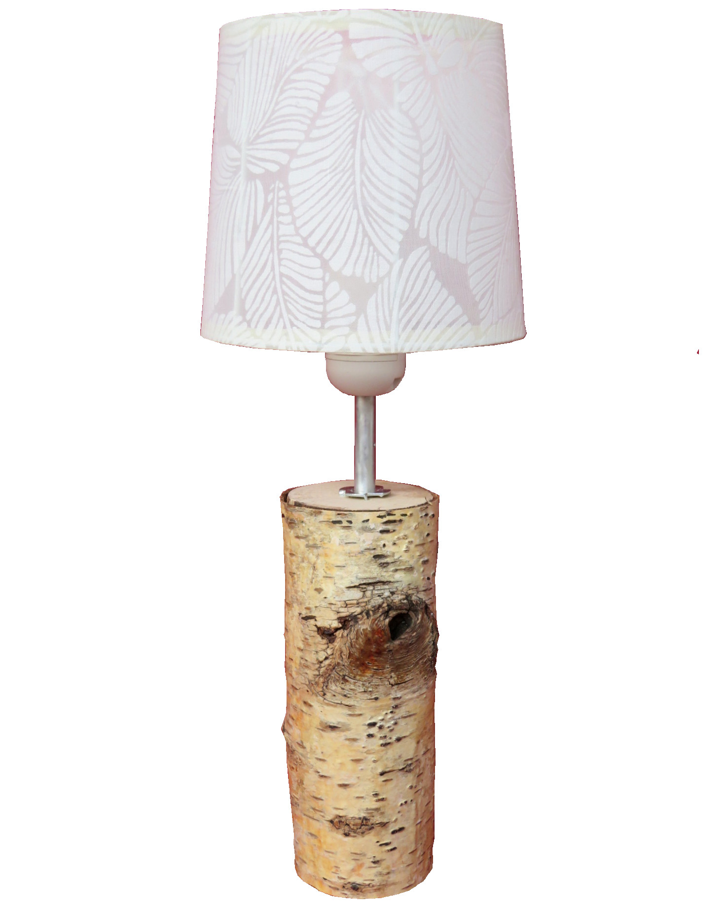 PIECE OF A BIRCH FROM TIERGARTEN IN BERLIN, BRIGHT TEXTILE SHADE WITH LEAF PATTERN, SMALL ALUMINIUM TUBE, STANDARD ELECTRIC SET. -