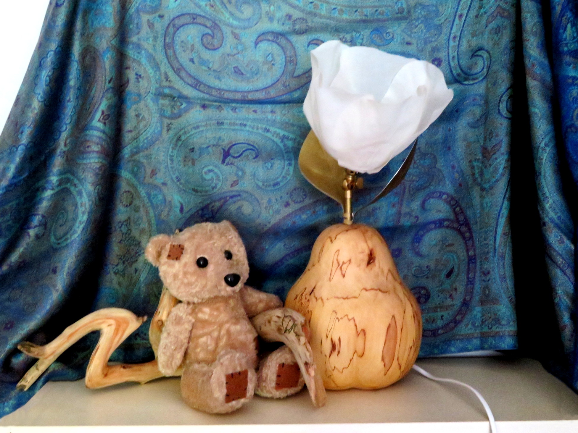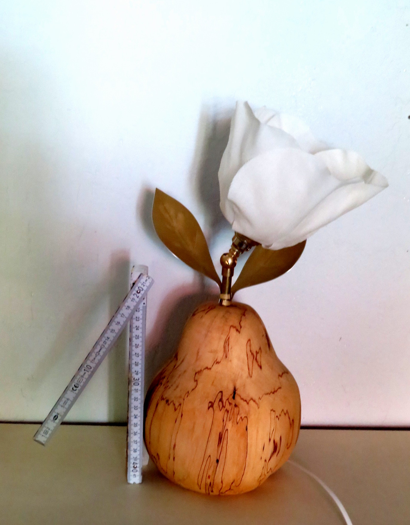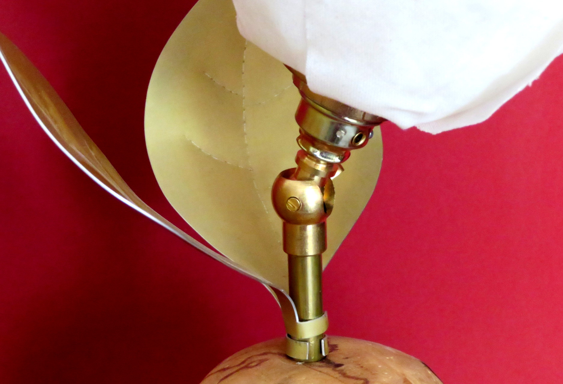BIRNENHOLZ, BAUMWOLLE, MESSINGROHR, MESSING-GELENK UND -FASSUNG, BLECH, STANDARD-ELEKTRIKSATZ. -