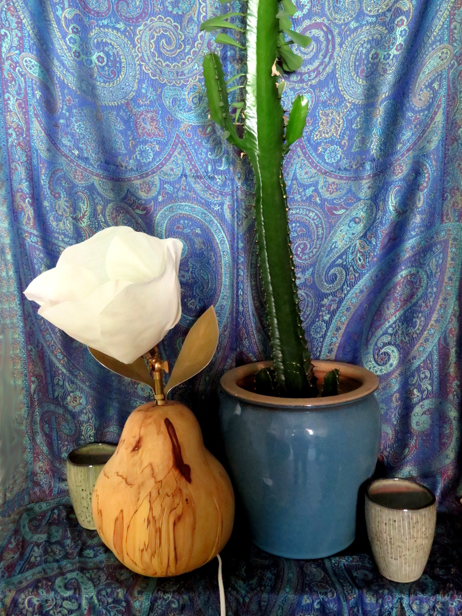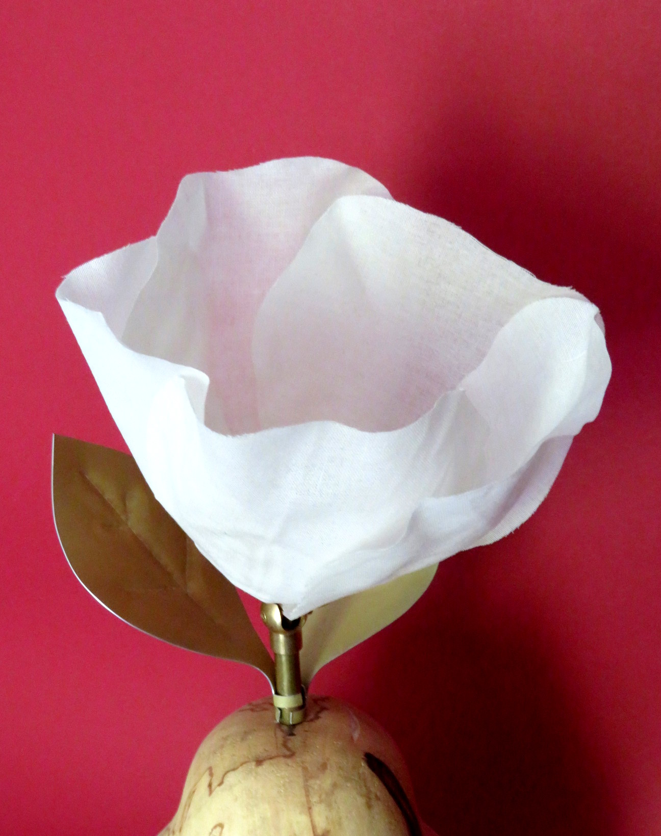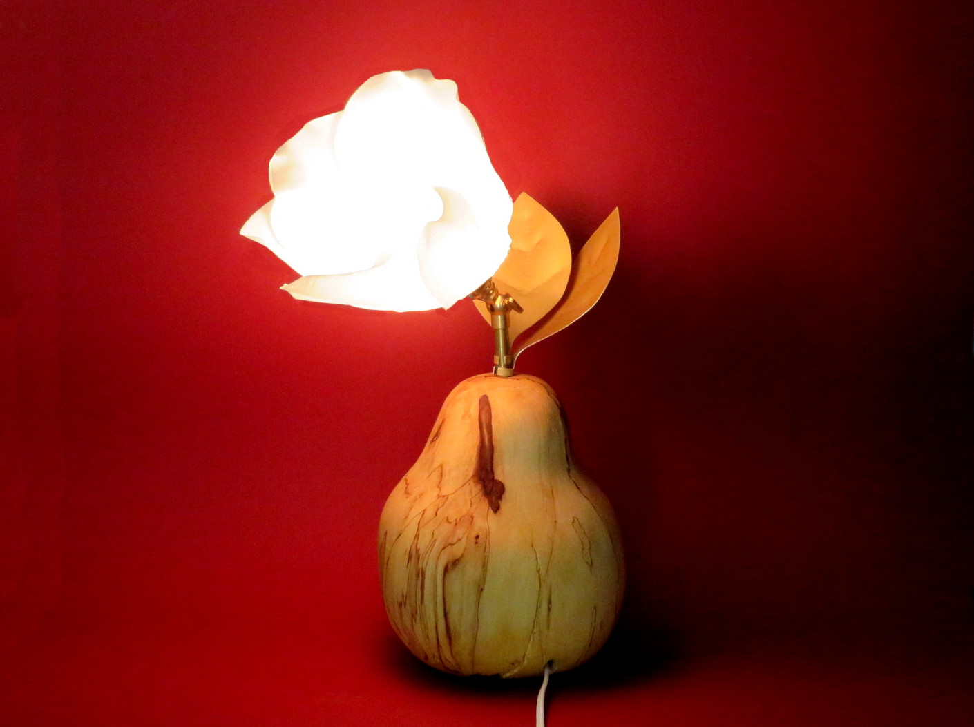 BIRNENHOLZ, BAUMWOLLE, MESSINGROHR, MESSING-GELENK UND -FASSUNG, BLECH, STANDARD-ELEKTRIKSATZ. -